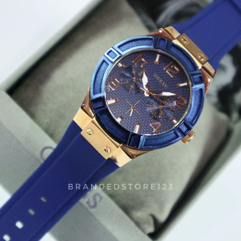 Salah satu barang fashion yang diminati adalah jam tangan. Jual jam tangan guess pria original garansi resmi. Harga Jam Tangan Pria Wanita Merk Guess 0247 rubber blue ORI BM Free Yes.