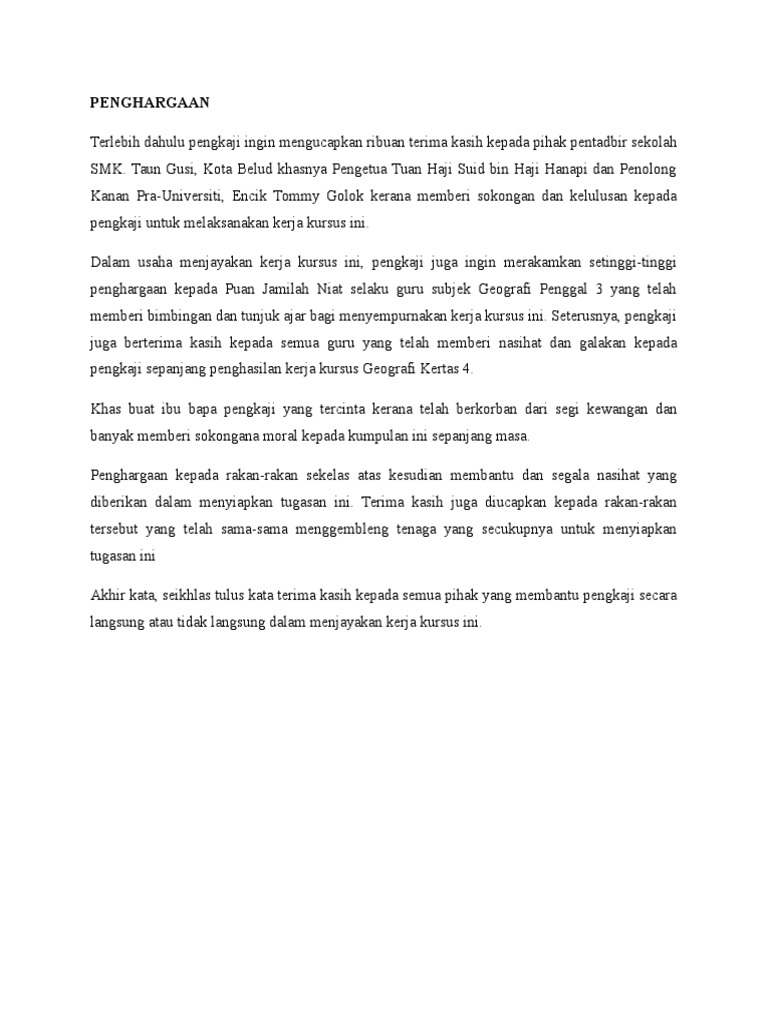 Contoh Kerja Kursus Geografi Sem 3 STPM. Terlebih dahulu saya mengucapkan terima kasih kepada pihak pentadbir.