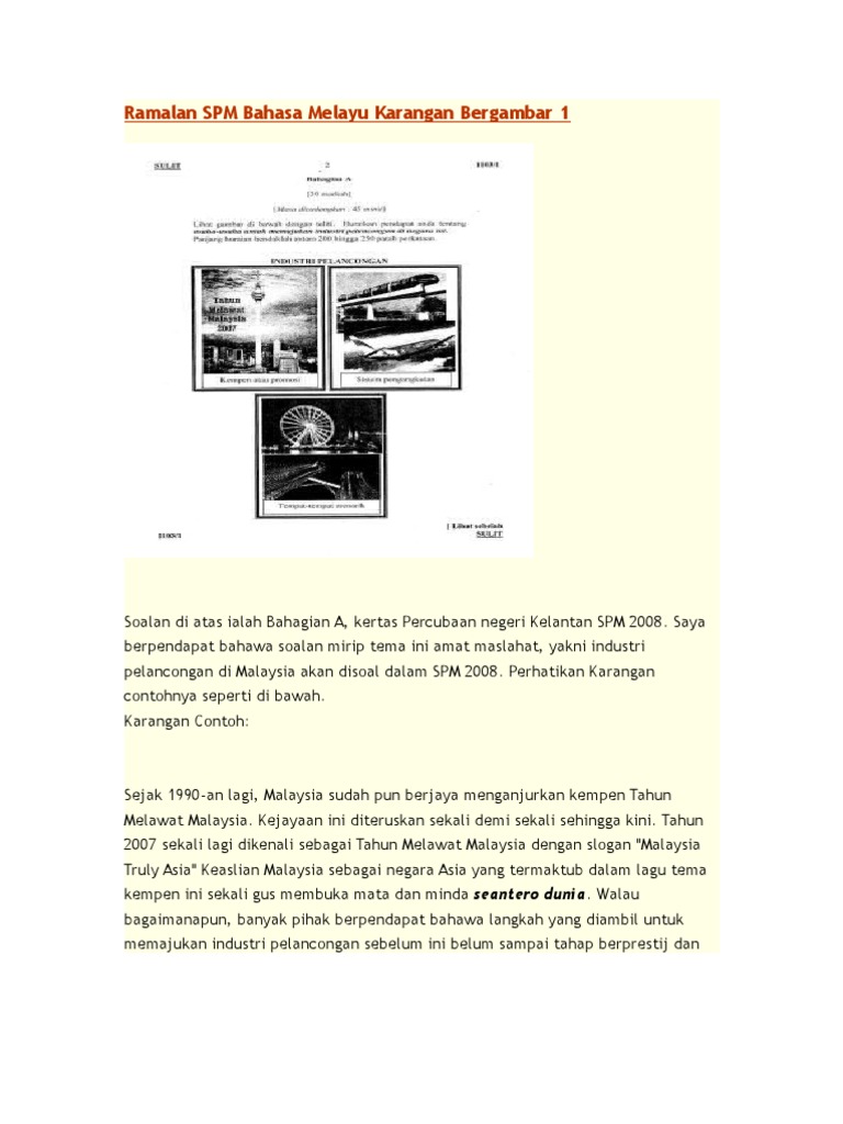 Contoh Soalan Karangan Bergambar Spm Written By Haven_Holder.161 Wednesday, May 25, 2022 Add Comment Edit Pin On School 1 1 Ramalan Spm Bahasa Melayu Karangan Bergambar 1 Pdf 1 Share this post